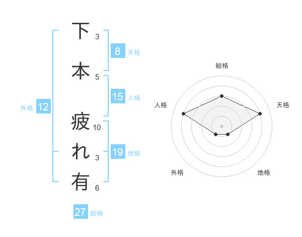 下本 疲れ有さんの総格は27画の3点!