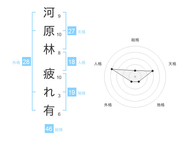 河原林 疲れ有さんを姓名の画数から五運を鑑定