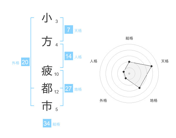 小方 疲都市さんの総格は34画の2点!