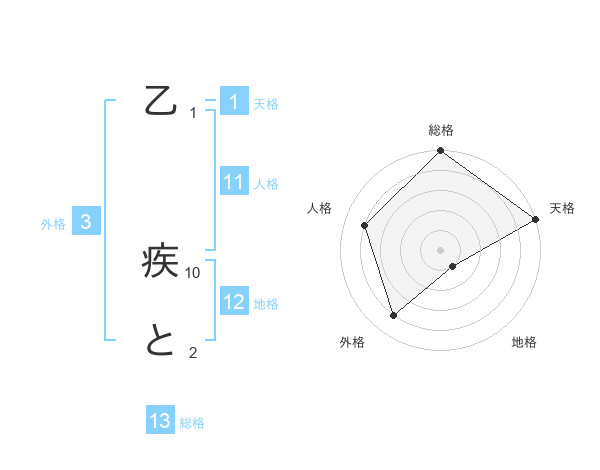 乙 疾とさんの総格は13画の5点!
