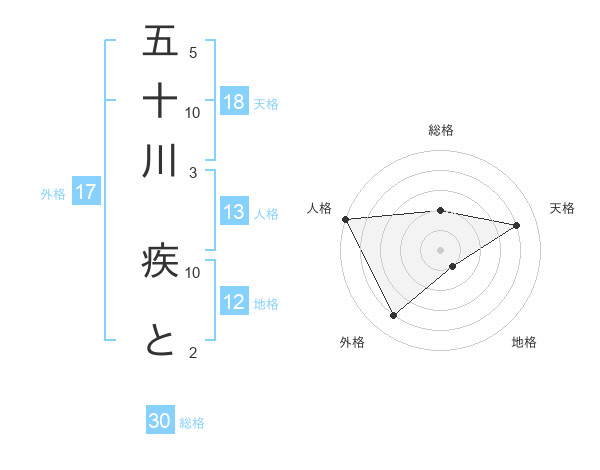 五十川 疾とさんを姓名の画数から五運を鑑定