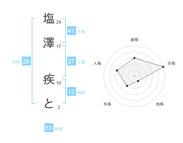塩澤 疾とさんを姓名の画数から五運を鑑定