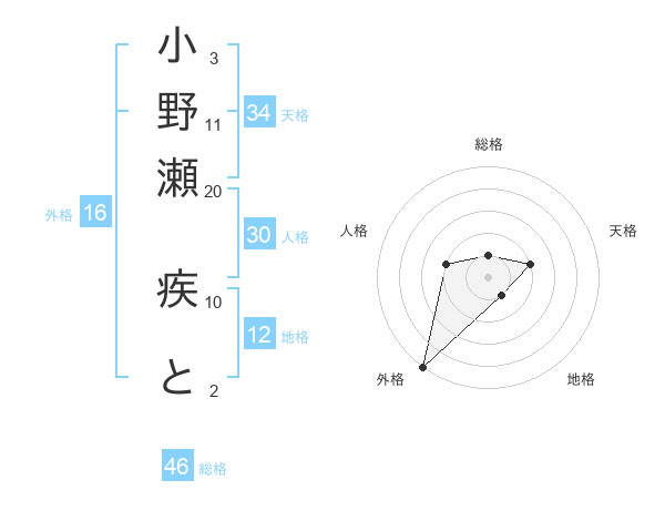 小野瀬 疾とさんを姓名の画数から五運を鑑定