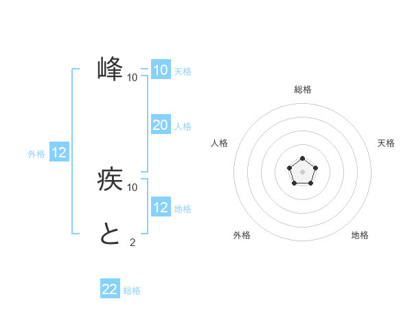 峰 疾とさんの総格は22画の1点!