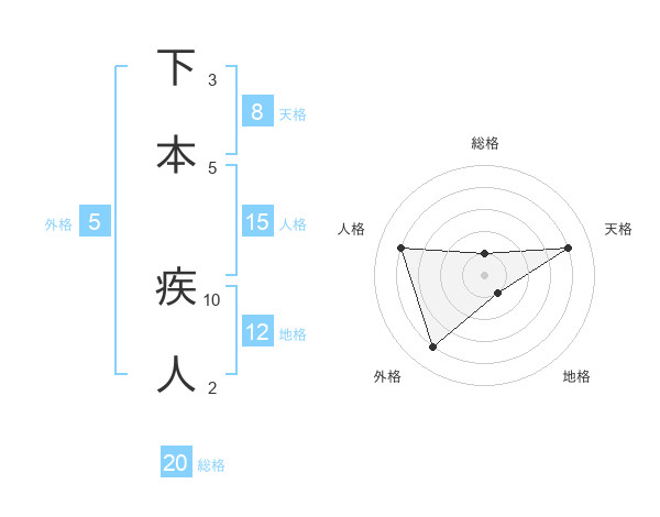 下本 疾人さんの総格は20画の1点!