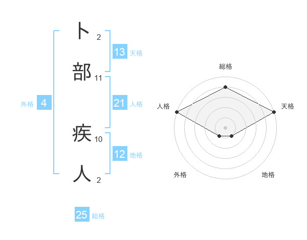 卜部 疾人さんを姓名の画数から五運を鑑定