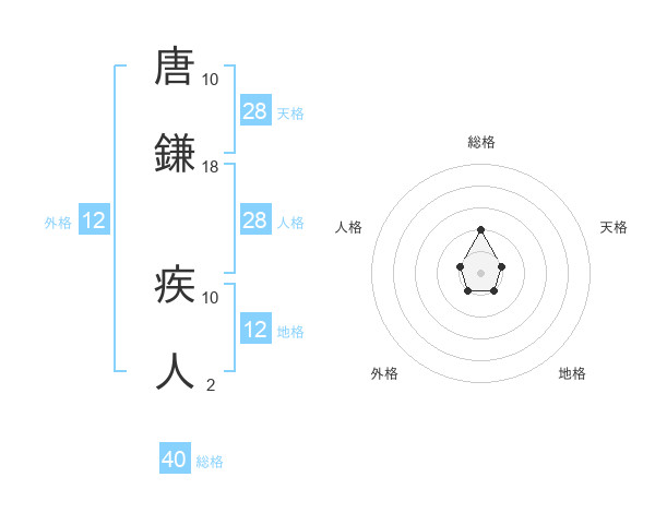 唐鎌 疾人さんを姓名の画数から五運を鑑定