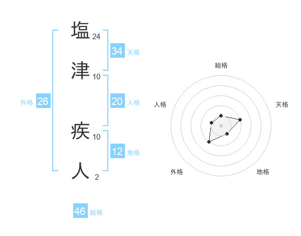 塩津 疾人さんの総格は46画の1点!