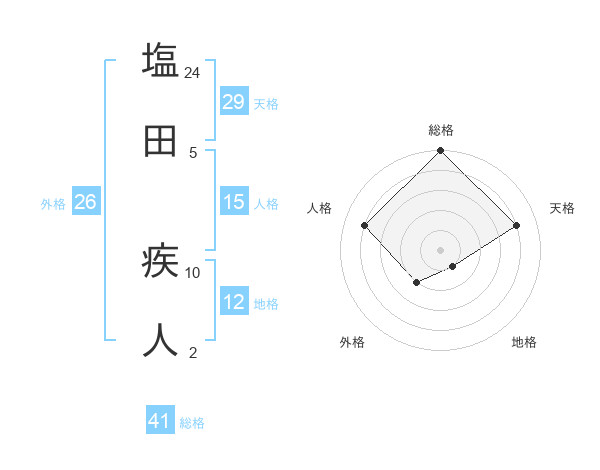 塩田 疾人さんの総格は41画の5点!