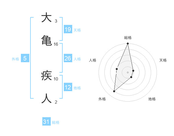 大亀 疾人さんの総格は31画の5点!