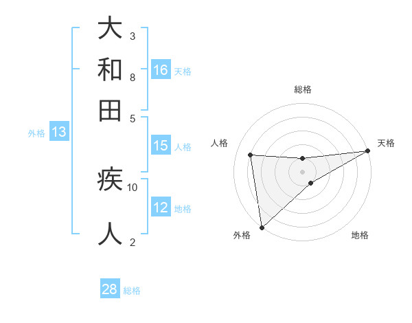 大和田 疾人さんを姓名の画数から五運を鑑定