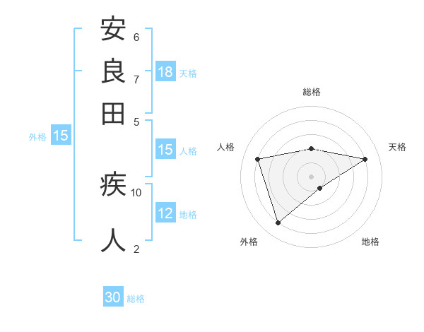 安良田 疾人さんを姓名の画数から五運を鑑定