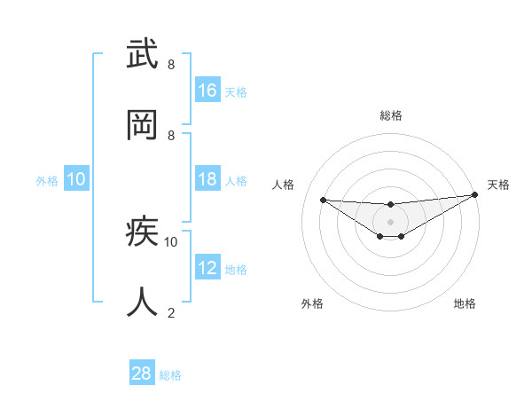 武岡 疾人さんの天格は16画の5点!