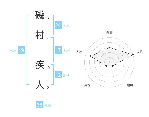 磯村 疾人さんを姓名の画数から五運を鑑定
