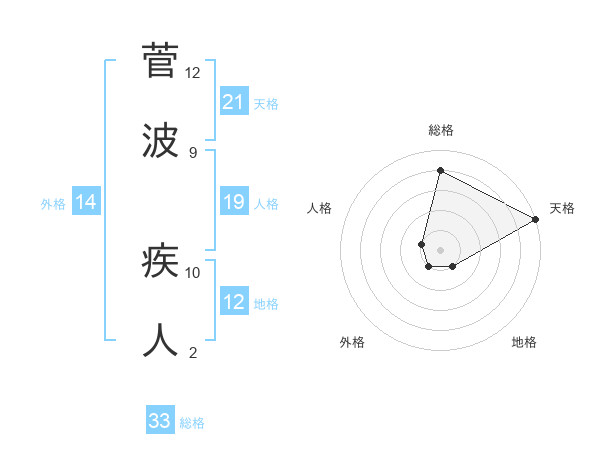 菅波 疾人さんの総格は33画の4点!