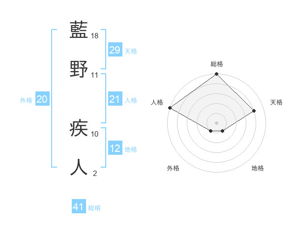 藍野 疾人さんの総格は41画の5点!