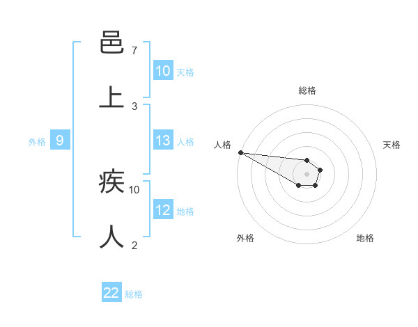 邑上 疾人さんの総格は22画の1点!