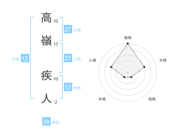 高嶺 疾人さんの総格は39画の5点!