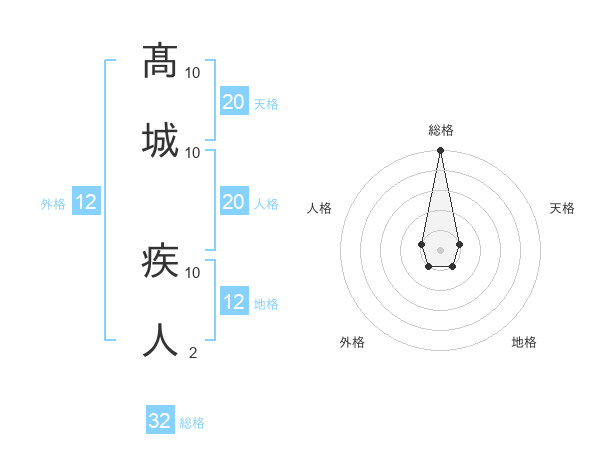 髙城 疾人さんの総格は32画の5点!