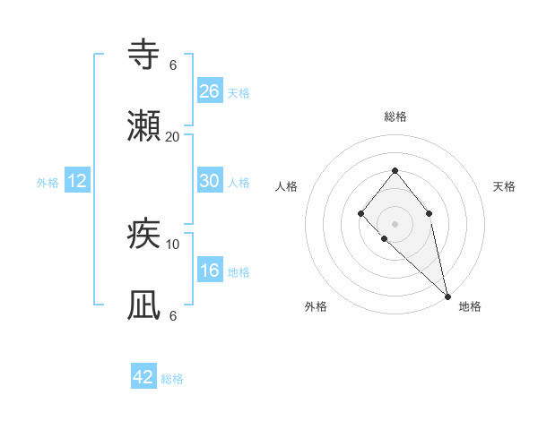 寺瀬 疾凪さんを姓名の画数から五運を鑑定
