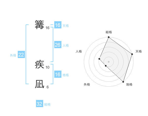 篝 疾凪さんの天格は16画の5点!