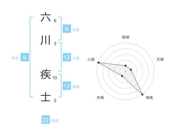 六川 疾士さんの地格は13画の5点!