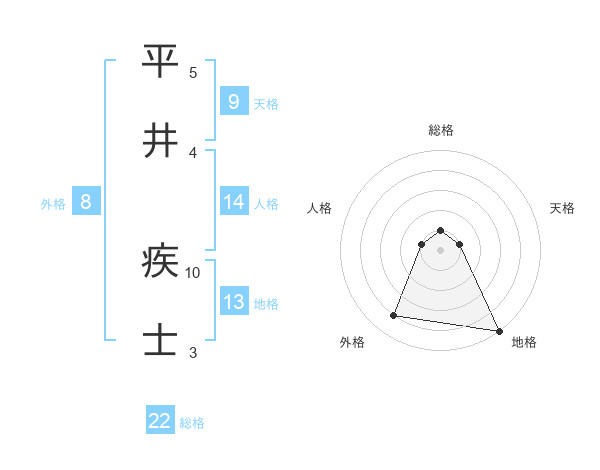 平井 疾士さんの総格は22画の1点!