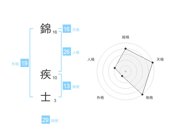 錦 疾士さんの総格は29画の4点!
