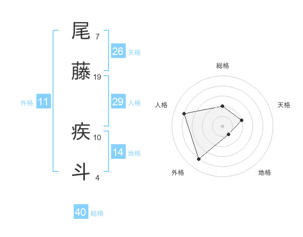 尾藤 疾斗さんの総格は40画の2点!