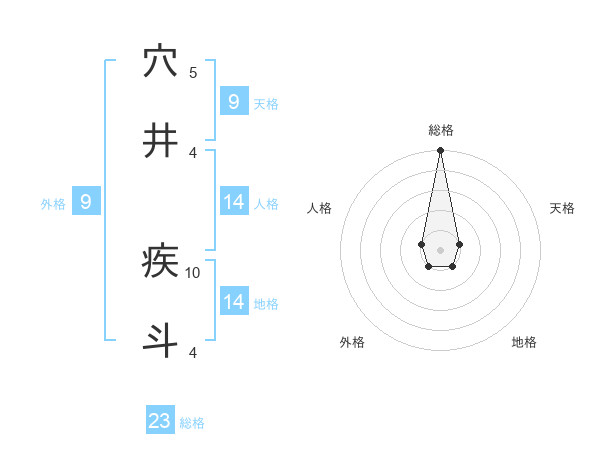 穴井 疾斗さんの総格は23画の5点!