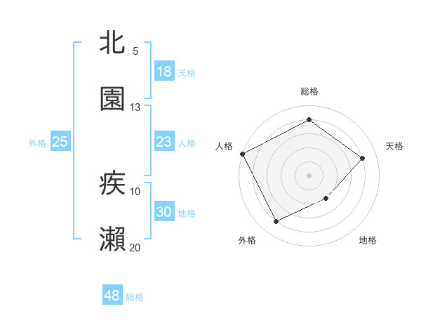 北園 疾瀨さんを姓名の画数から五運を鑑定