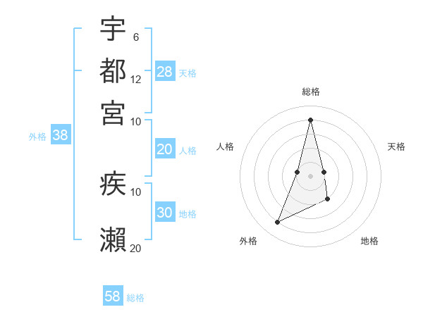 宇都宮 疾瀨さんを姓名の画数から五運を鑑定