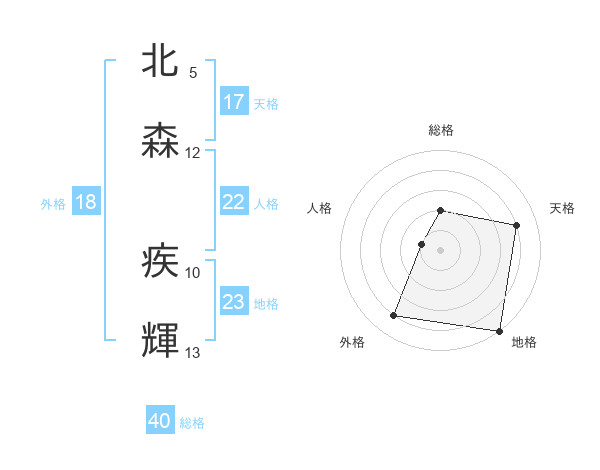 北森 疾輝さんを姓名の画数から五運を鑑定