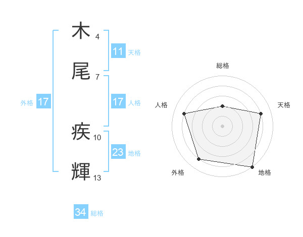 木尾 疾輝さんを姓名の画数から五運を鑑定