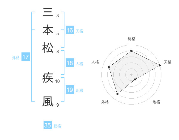 三本松 疾風さんを姓名の画数から五運を鑑定