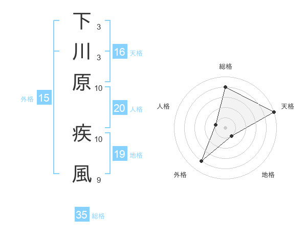 下川原 疾風さんの総格は35画の4点!
