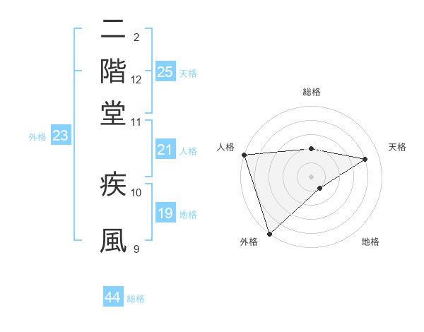 二階堂 疾風さんの天格は25画の4点