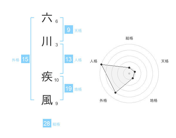 六川 疾風さんの総格は28画の1点!