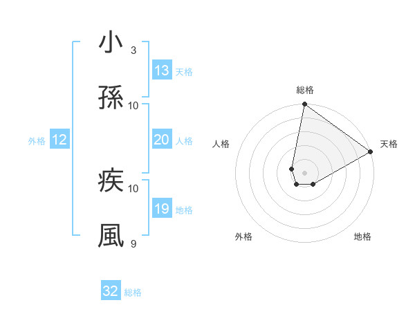 小孫 疾風さんの総格は32画の5点!