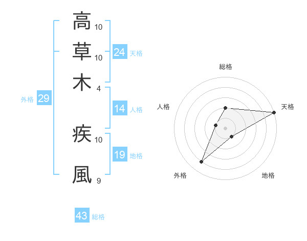 高草木 疾風さんを姓名の画数から五運を鑑定