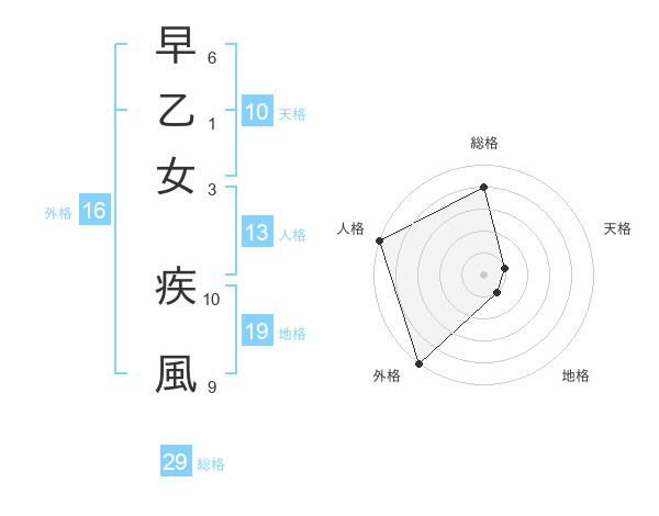 早乙女 疾風さんを姓名の画数から五運を鑑定