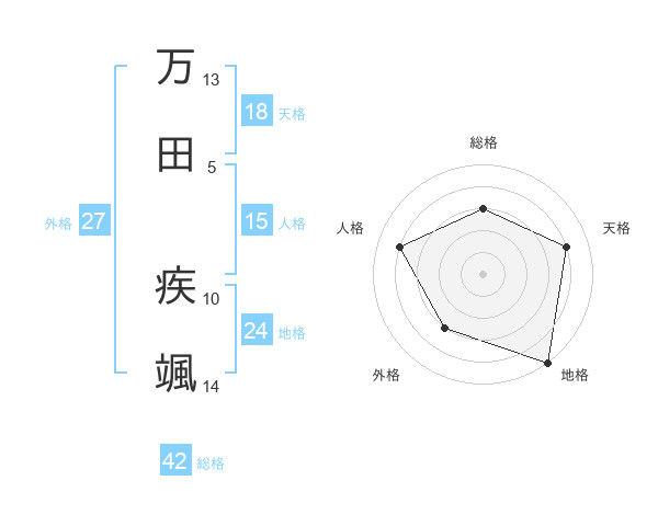 万田 疾颯さんを姓名の画数から五運を鑑定