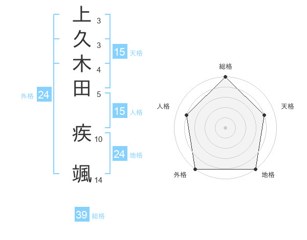 上久木田 疾颯さんを姓名の画数から五運を鑑定