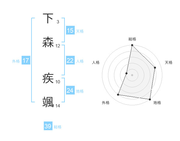 下森 疾颯さんの総格は39画の5点!