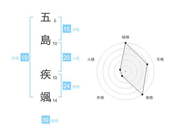 五島 疾颯さんの総格は39画の5点!