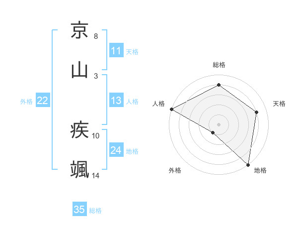 京山 疾颯さんの総格は35画の4点!