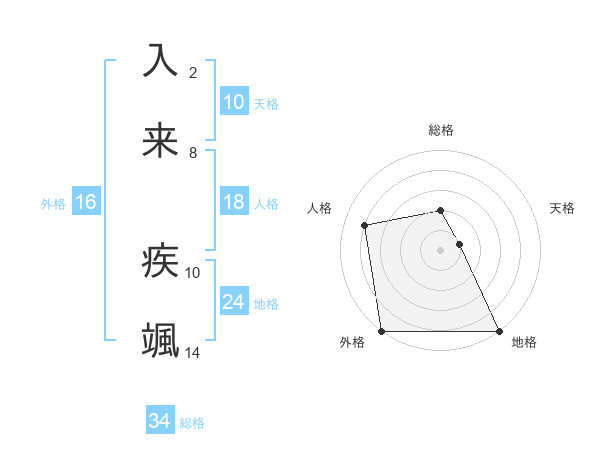 入来 疾颯さんを姓名の画数から五運を鑑定