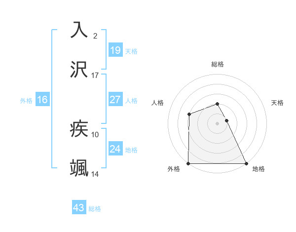 入沢 疾颯さんを姓名の画数から五運を鑑定