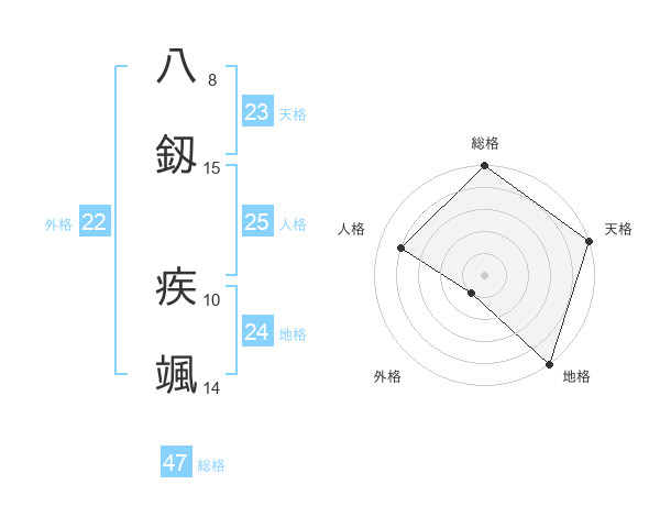 八釼 疾颯さんを姓名の画数から五運を鑑定