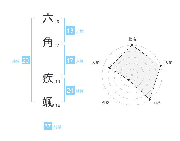 六角 疾颯さんの総格は37画の5点!